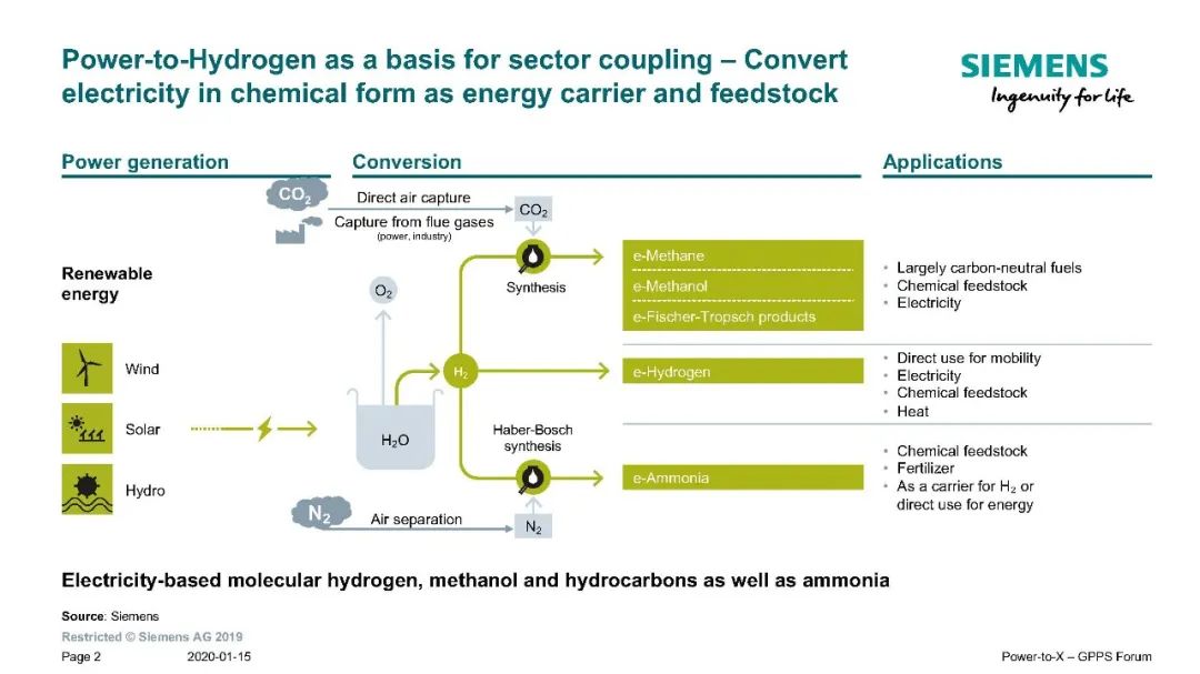 可再生能源耦合转换成“绿氨”能源系统由水力发电系统或风力发电系统或太阳能发电系统、电解水制氢装置、氢能储存、变压吸附空分氮装置、合成氨系统和氨裂解制氢组成,这个过程核心是可再生能源耦合发电制氢技术。