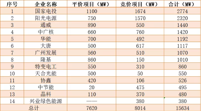 表2:2019年第一批平价、竞价项目中入选规模排名前列的投资企业