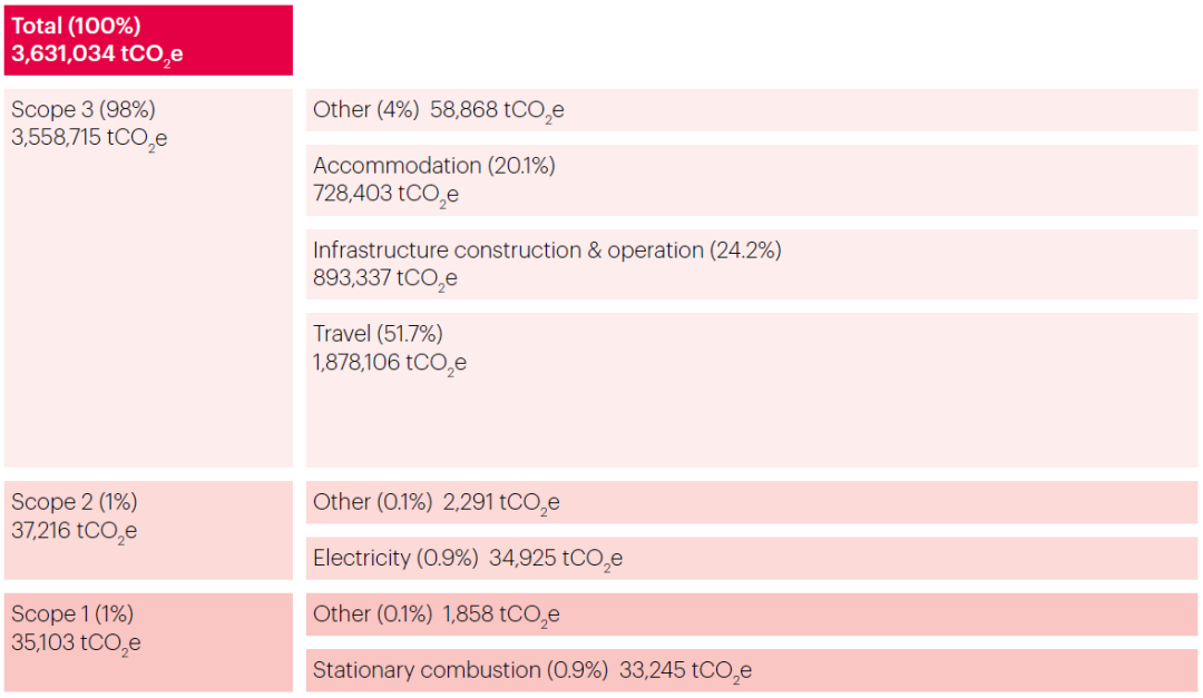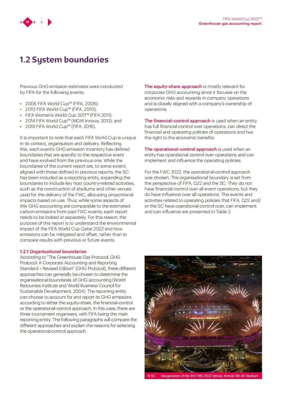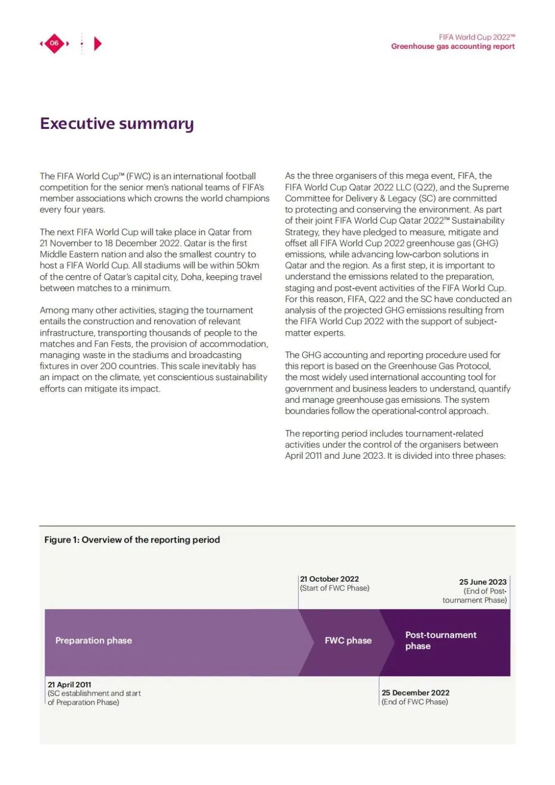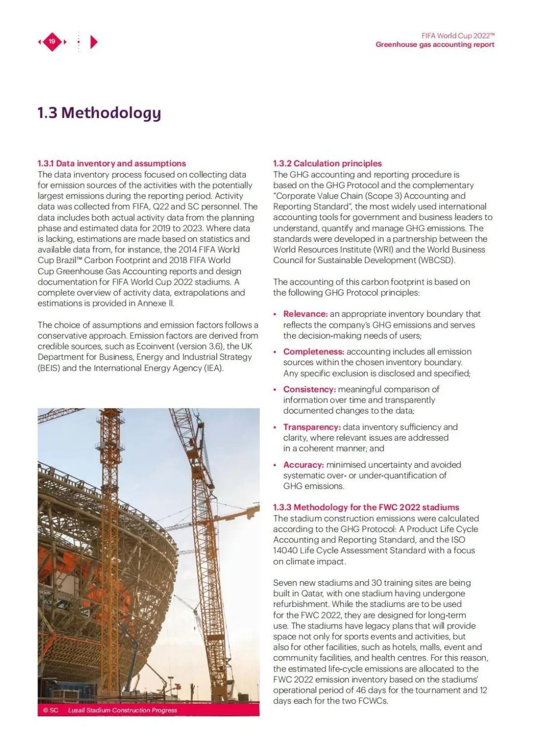 11月21日,卡塔尔世界杯开幕,2021年,国际足联对外发布了《卡塔尔世界杯温室气体核算报告》。报告显示,从2011年4月至2023年6月的筹备、赛事和赛后三个阶段,本届世界杯报告期温室气体排放总量估计为363万吨二氧化碳当量。其中大部分(98%)是间接排放(范围3,356万吨二氧化碳当量),主要来自于卡塔尔的比赛参加者,包括普通公众、官员和工作人员的旅行。
