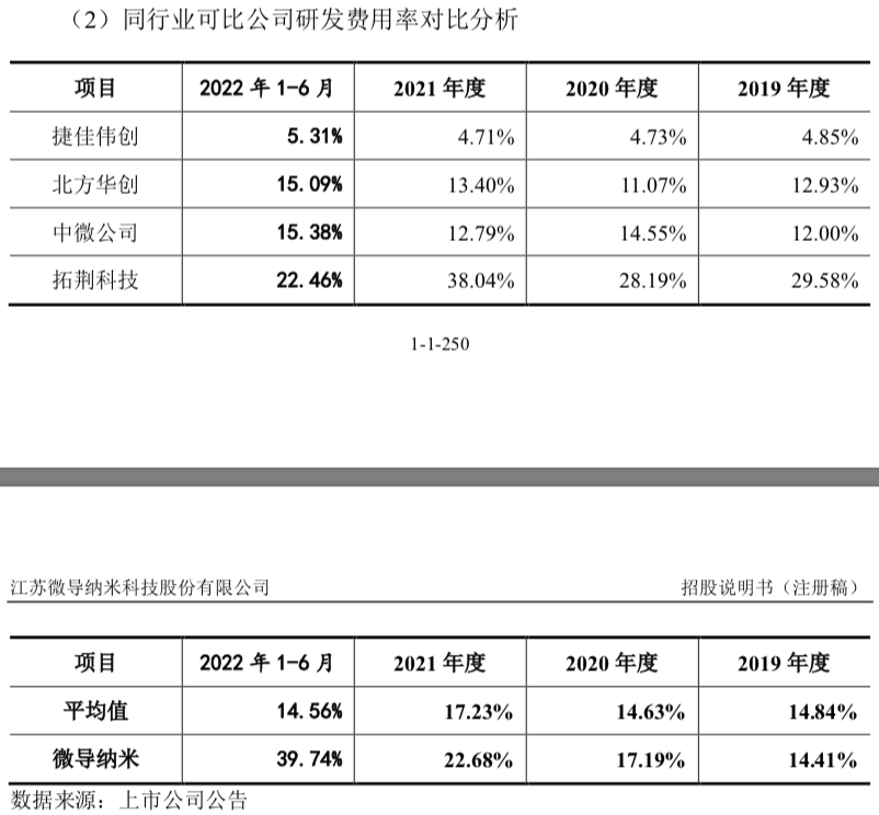 大量订单背后,《招股书》显示,报告期内其研发费用分别为3109万元、5373万元、9704万元和6183万元,占营业收入比重分别为14.41%、17.19%、22.68%和39.74%。截至2022年9月末,研发人员占员工比例为36.79%。高于同行业可比公司平均值。