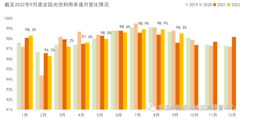 截至9月底全国光伏利用率逐月变化情况