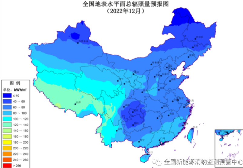 附图6 2022年12月全国水平面总辐照量预报图