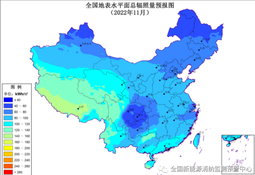 附图4 2022年11月全国水平面总辐照量预报图