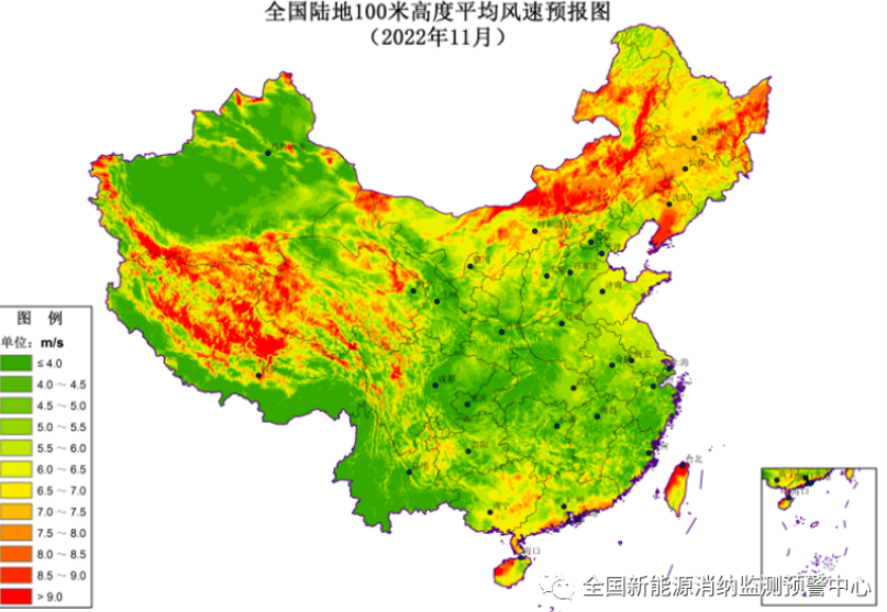 附图3 2022年11月全国平均风速预报图