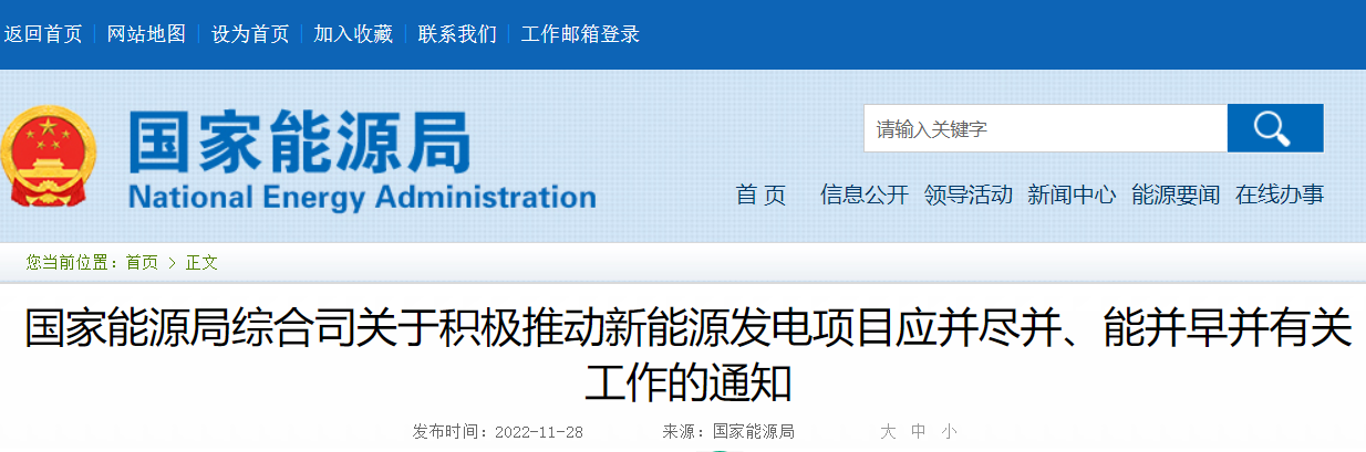 今年以来,我国新能源发电持续快速增长并保持较高利用水平,第四季度新能源投产并网较为集中。保证新能源发电项目及时并网,既有利于增加清洁电力供应,发挥新能源在“迎峰度冬”期间的保供作用,也有利于促进能源清洁低碳转型,助力实现碳达峰碳中和目标。为进一步做好2022年底前新能源发电项目并网接入工作,现就有关事项通知如下。