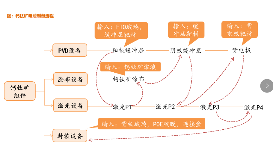 1.钙钛矿电池制备:PVD设备→涂布设备→激光设备→封装设备