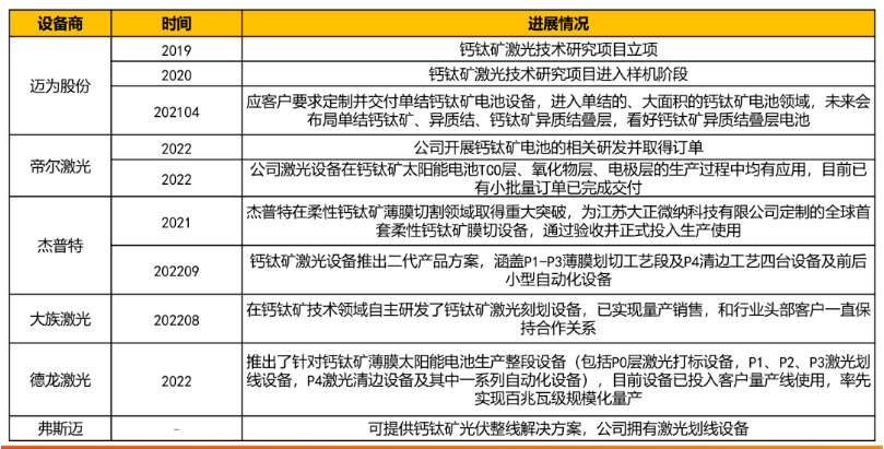建议关注:钙钛矿设备:捷佳伟创、京山轻机、帝尔激光、杰普特等。