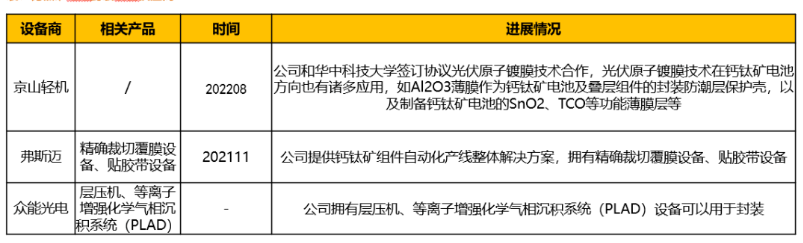 国内钙钛矿电池封装设备商主要如下: