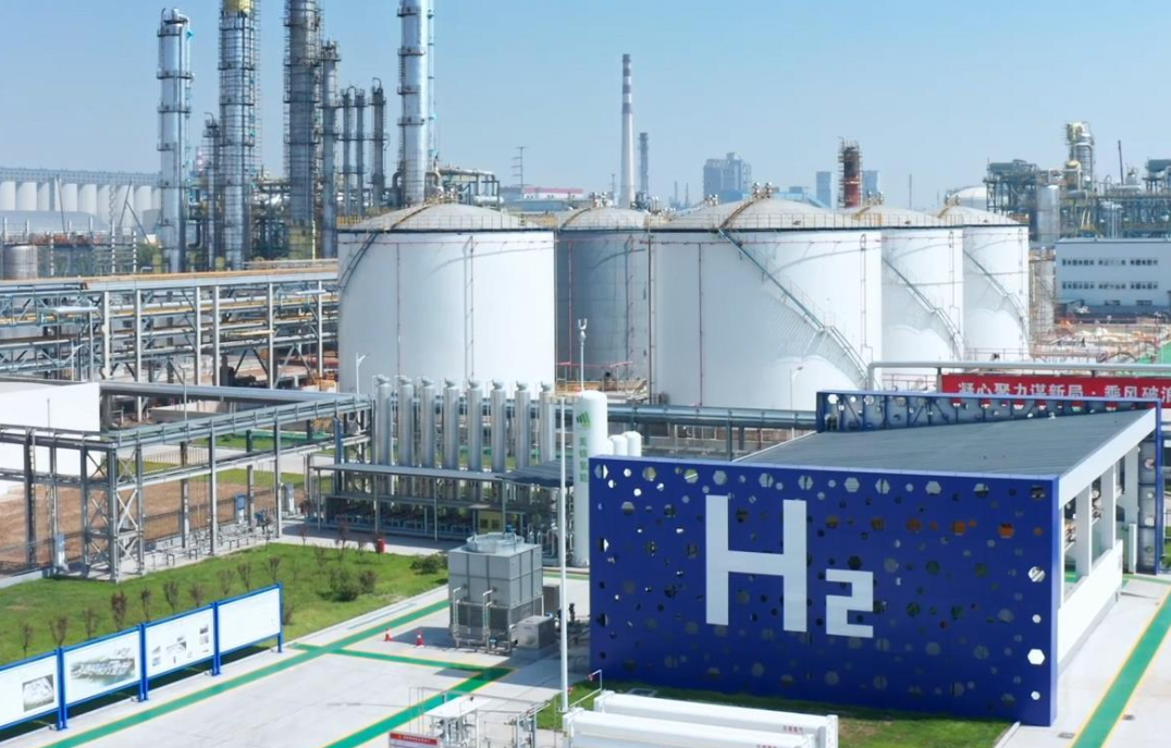 一排排白色储氢装置拔地而起,一辆辆氢能重卡在街道穿梭……位于山西吕梁孝义市的鹏飞集团正呈现出绿色能源发展的新图景。