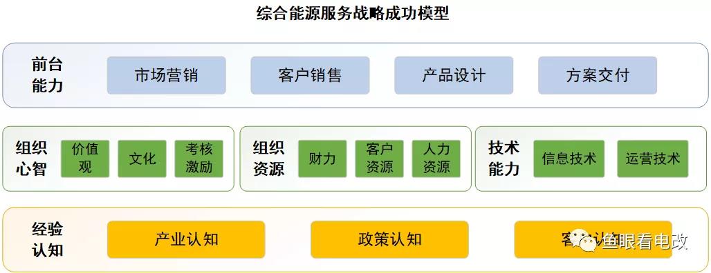 对于这些问题,用一个综合能源服务的战略成功模型来进行分析。这里先申明两个前提: