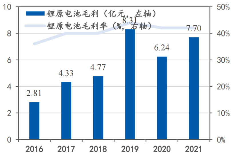 2019年以来,亿纬锂能的锂原电池业务一直保持着超过30%的毛利率,为亿纬锂能其他业务的扩张提供稳健的现金流量。