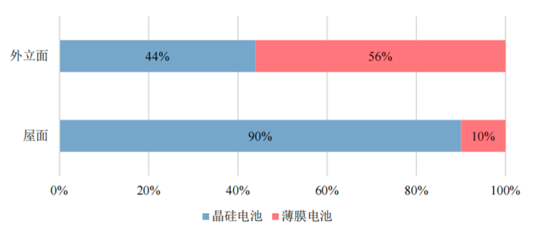 图7.2018年BIPV建筑屋面和外立面的光伏电池技术占比