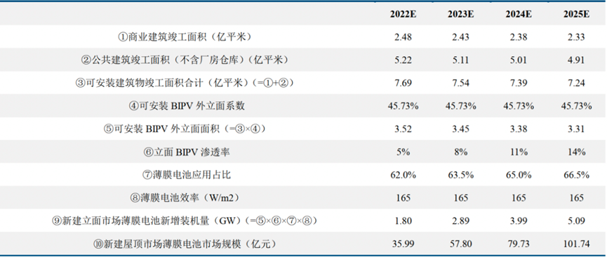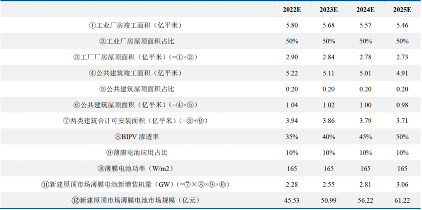 表1.薄膜电池在新建立面市场中的新增装机量规模