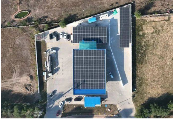 在光伏区,利用罩棚和站房屋顶铺设224.4千瓦光伏发电,实现自发自用,降低加油站及充电站的综合用电成本,多余电量向电网销售,提高加油站的整体收益;在日照条件充足情况下,光伏区年均发电268.8兆瓦时,相当于减少二氧化碳排放263.2吨。