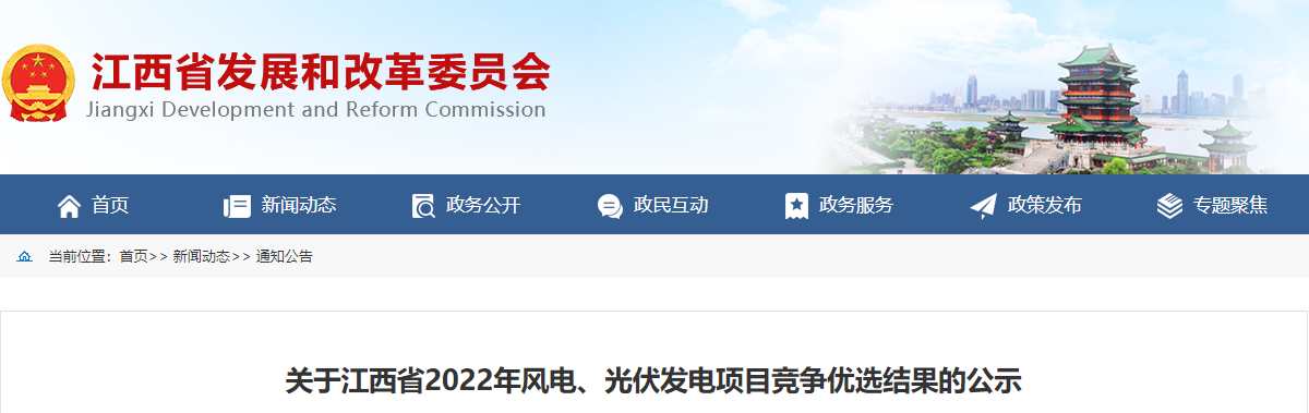 关于江西省2022年风电、光伏发电项目竞争优选结果的公示