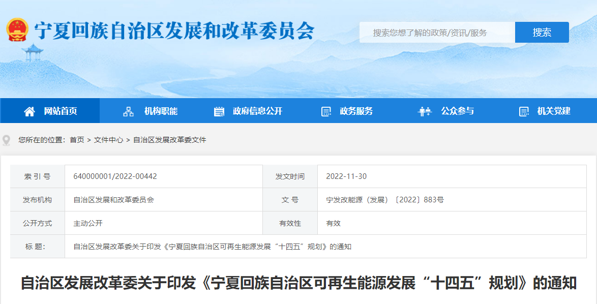 自治区发展改革委关于印发《宁夏回族自治区可再生能源发展“十四五”规划》的通知