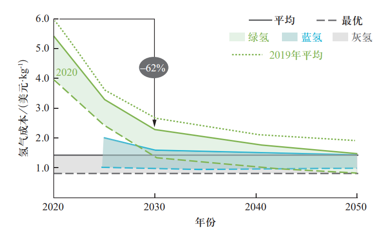 图 4 2020—2050年期间绿氢成本变化趋势