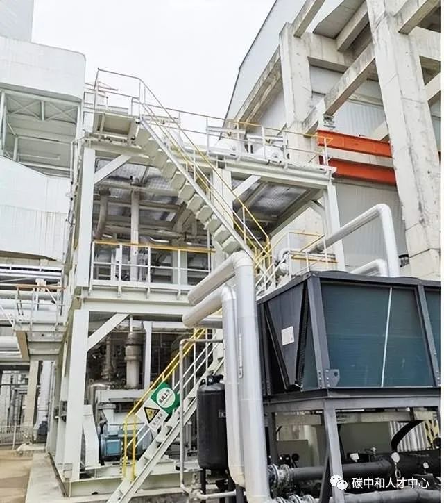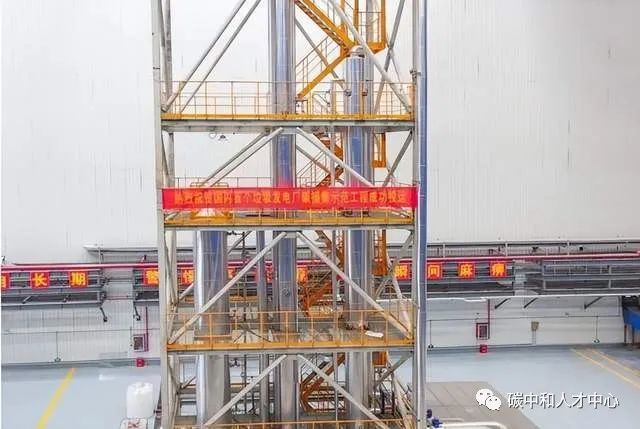 这是中国首个碳捕集装置,在华能北京热电厂投入运行,年捕碳量约为3000吨,该装置由华能集团独立设计和建造,捕集的CO2实现了资源化利用。