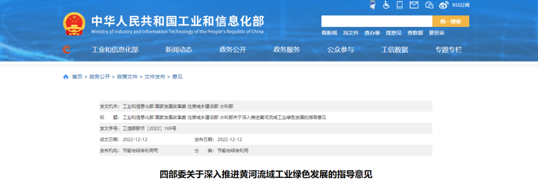 12月12日,工信部、发改委、住建部、水利部4部委联合印发了关于深入推进黄河流域工业绿色发展的指导意见。扫描文末二维码可查看政策原文。