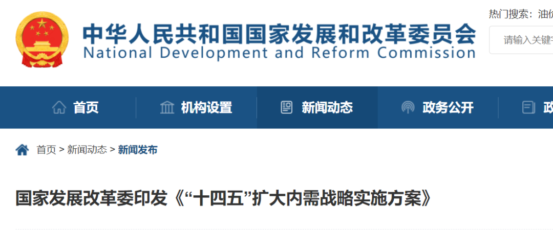 为深入贯彻落实“十四五”规划《纲要》和《扩大内需战略规划纲要(2022-2035年)》,近日,国家发展改革委印发《“十四五”扩大内需战略实施方案》,方案提出: