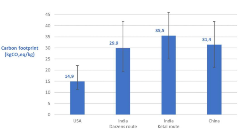 LCA还表示了亚洲供应商之间在足迹方面的差异。例如,一些亚洲工厂使用生物质来产生低碳蒸汽,与那些使用煤炭产生的蒸汽的工厂相比,布洛芬的碳足迹更少。