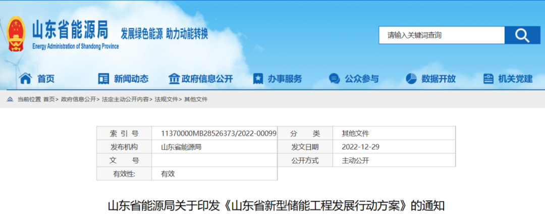 山东省能源局关于印发《山东省新型储能工程发展行动方案》的通知