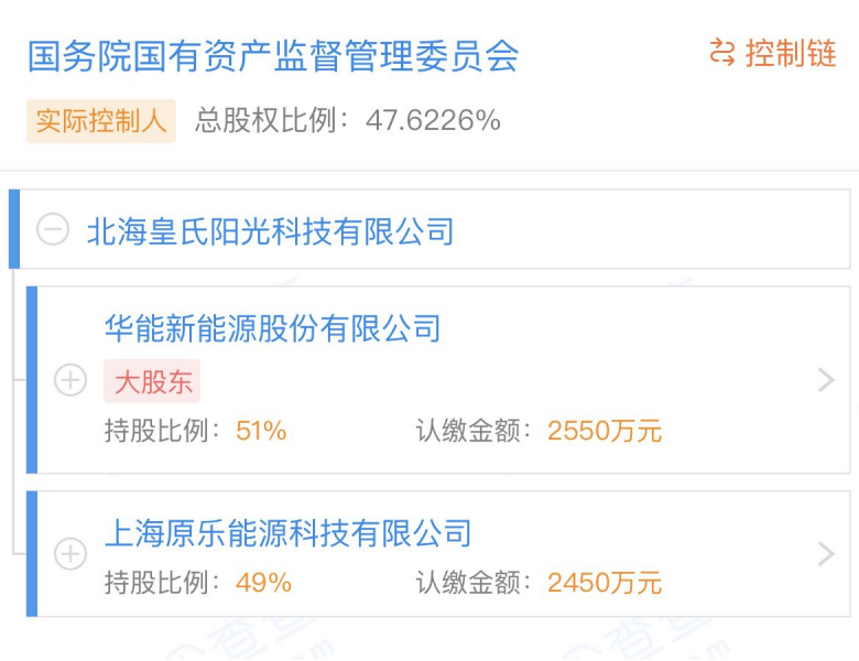 同时,中国华能旗下华能新能源还战略入股“水牛奶巨头”皇氏集团的10GW光伏组件项目。2022年8月28日上午,华能集团广西分公司党委书记、执行董事李宝山在合浦县委副书记、县长白银冰以及皇氏阳光科技有限公司董事长鲁严飞等热情陪同下,共同参加了北海皇氏阳光科技有限公司合浦县一期3GW高效光伏组件制造项目开工仪式。企查查数据显示,华能新能源已经成为北海皇氏央国科技有限公司的控股股东,股权占比51%。