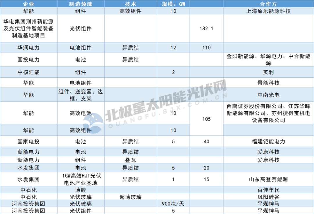 2022年5月19日,中国华电集团与洪湖市、监利市合作的华电集团荆州新能源及光伏组件智能装备制造基地项目落户荆州,该项目总投资182.1亿元,为国内最大光伏组件智能装备制造基地。不过,该项目的组件产能规划并未披露。