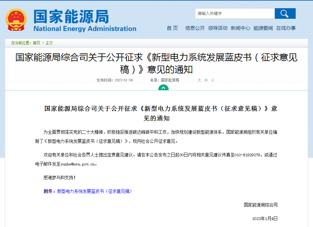 《新型电力系统发展蓝皮书(征求意见稿)》意见的通知
