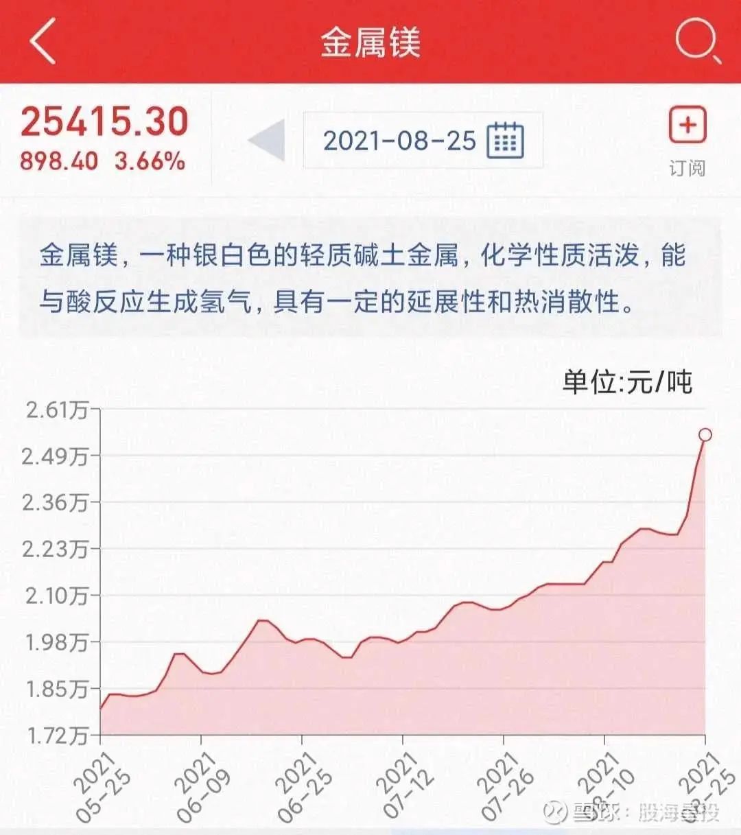 镁价的大幅上涨导致了镁电池进一步发展,镁如果能大幅降低成本就能掀起新一轮新能源产业革命。