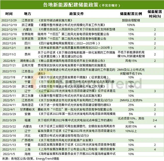为助推储能行业发展,减少弃风弃光等问题,强制配储最早于2020年登陆光伏装机大省山东省试行,初步建立起市场机制,并自2021年以后,尤其在2022年以来全国二十多地推行。由于强制配储提高了新能源发电投资成本,行业内对该政策的普适性发起多番讨论,逐步激发了共享储能、电价调整等多项新政策、新方法、新热点。