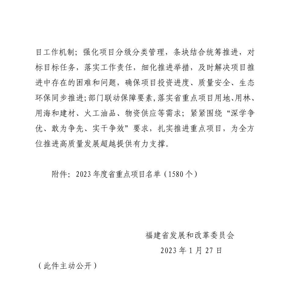 1月28日,福建省发改委发布《关于印发2023年度省重点项目名单的通知》。
