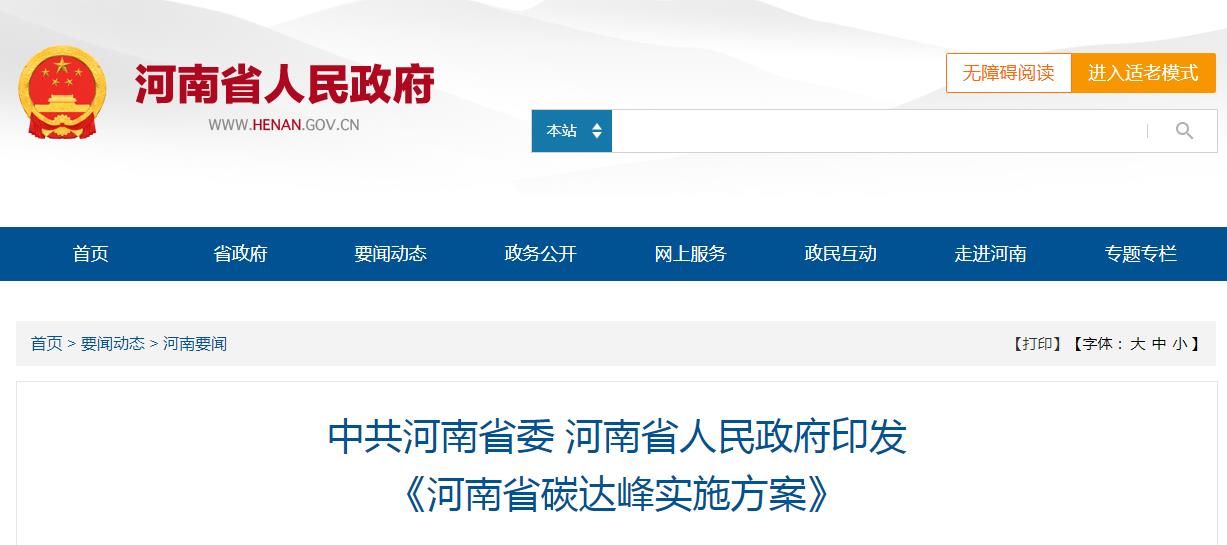 近日,中共河南省委、河南省人民政府印发《河南省碳达峰实施方案》,并发出通知,要求各地各部门结合实际认真贯彻落实。