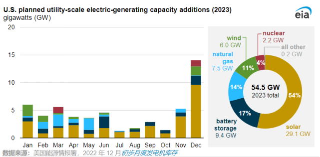 美国能源情报署的一份最新报告预计,2023年,美国54%的新增发电将来自光伏。