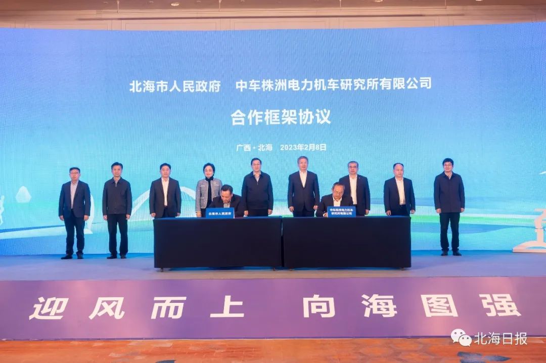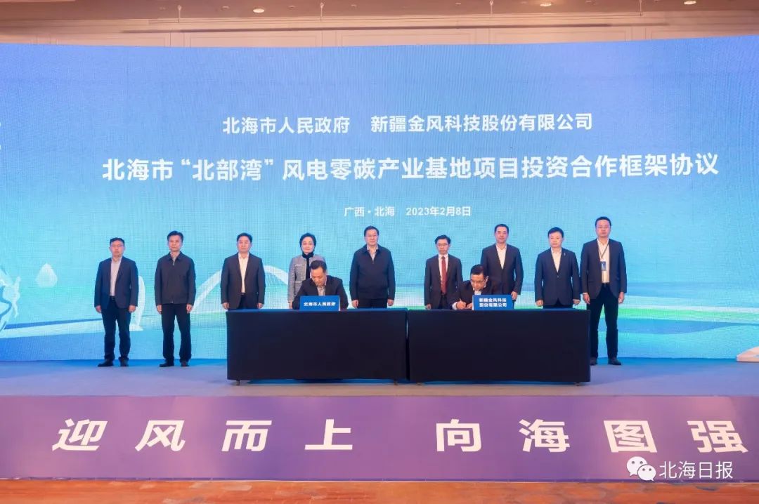 会上,北海市人民政府分别与新疆金风科技股份有限公司、中车株洲电力机车研究所有限公司签署了合作框架协议。