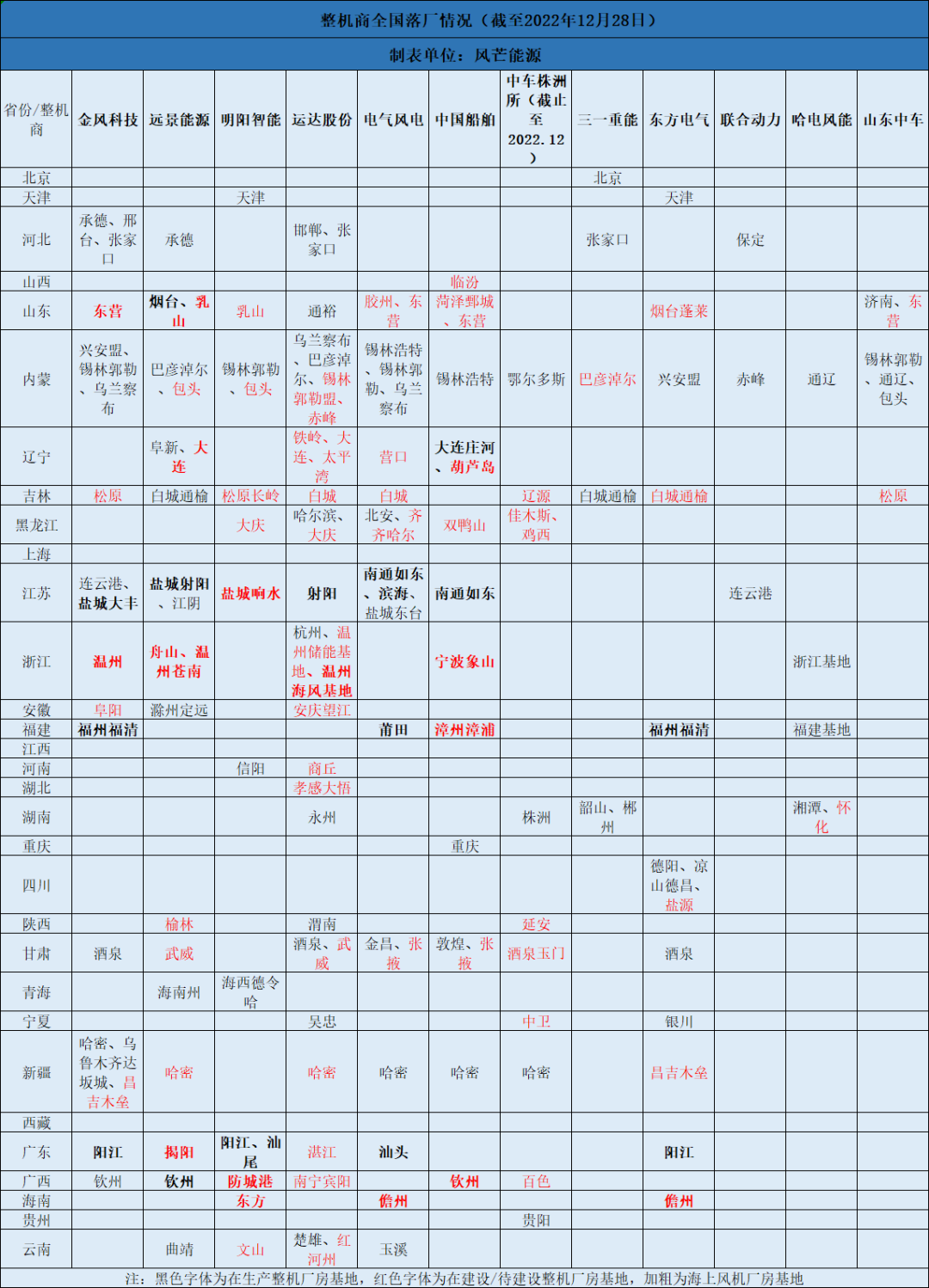 小编根据公开信息不完全统计,截至2022年12月底,全国已至少有161个整机制造厂房基地。包括,33个海上整机生产厂房基地,其中,远景能源、明阳智能、中国船舶在广西均有海上整机落厂。
