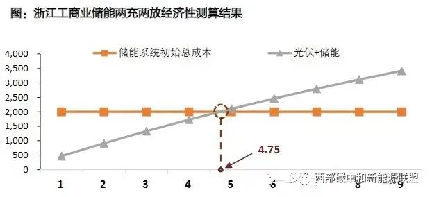 浙江省:两次充电均在谷时,两次放电分别在尖峰段及高峰段,平均峰谷价差为0.85元/kWh,测得投资回收期约为4.75年。