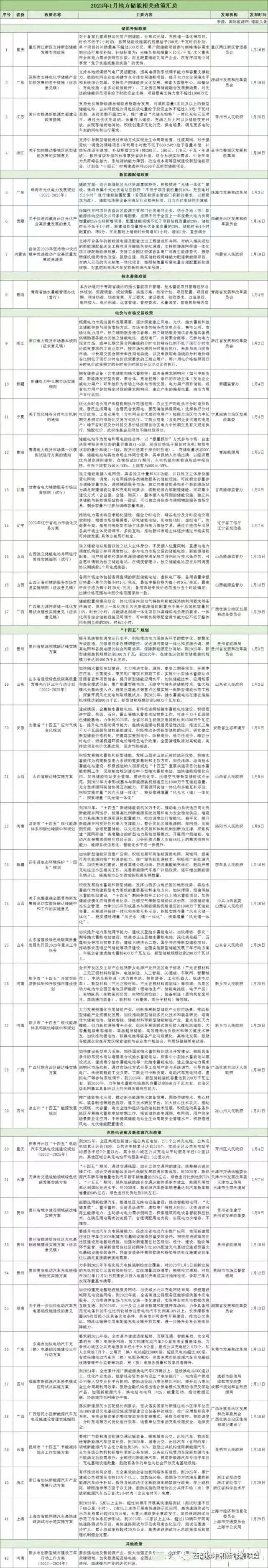补贴政策方面,用户侧储能补贴政策,截至2023年1月份,全国各地正在执行的储能补贴政策共32项,2022年共发布20项,储能补贴政策主要以用户侧为主,注重与分布式光伏相结合,地方招商产业需求较为旺盛;补贴方式主要以容量补贴、放电补贴和投资补贴为主,补贴方向主要与分布式光伏结合为主。其中浙江、江苏、四川、安徽、广东等地政策出台最为密集,浙江省龙港市、北京市、重庆市铜梁区等地方政策支持力度较大;具体政策信息见全文最后附件一《2023年国家储能相关政策汇总》。