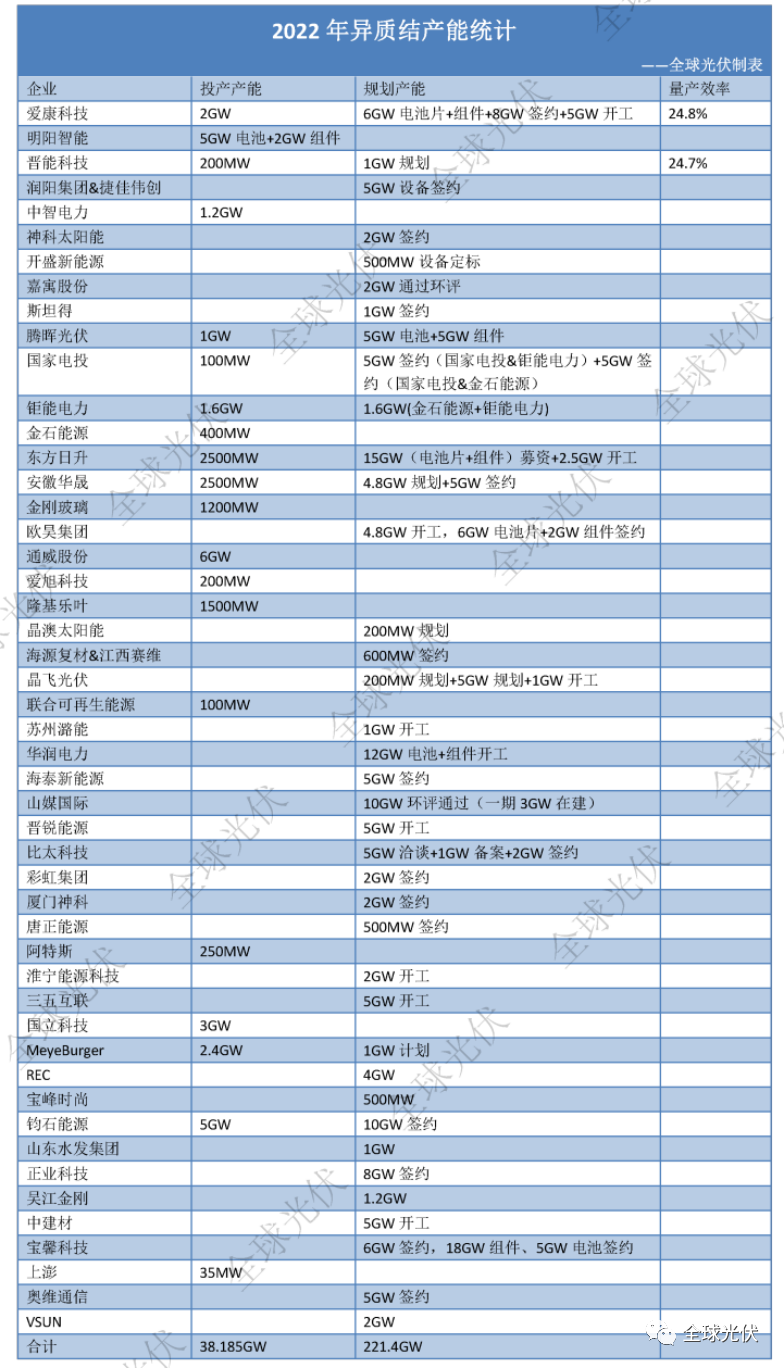 大手笔跻身异质结!2022年:49家企业现有产能超38.185GW,未来规划已达221.4GW!