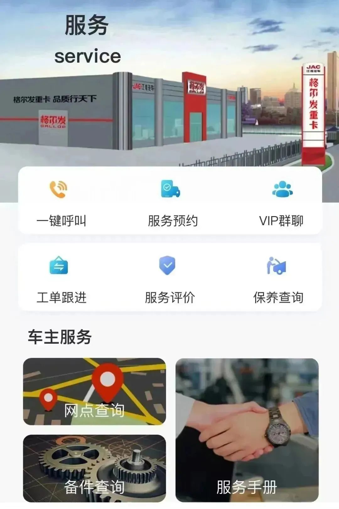 为及时响应卡友需求,江淮重卡推出“1分钟响应、30分钟跟踪、常规区域2小时到达、2小时修复”的服务承诺;全国600余家服务网点、57家备件中心库、1000多个备件网点,覆盖全国主要省级行政区域。而对于大型物流企业,江淮重卡为卡友提供定制化全包服务,帮助卡友精细化控制成本,管理车队更轻松。
