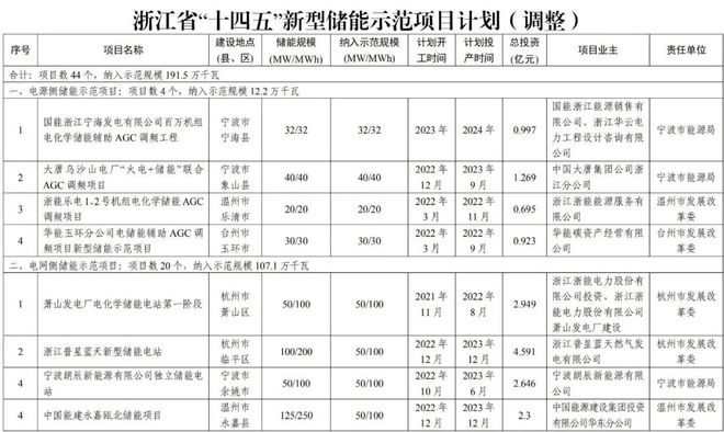 新增13个项目2.77GWh!浙江“十四五”新型储能示范项目名单新调整