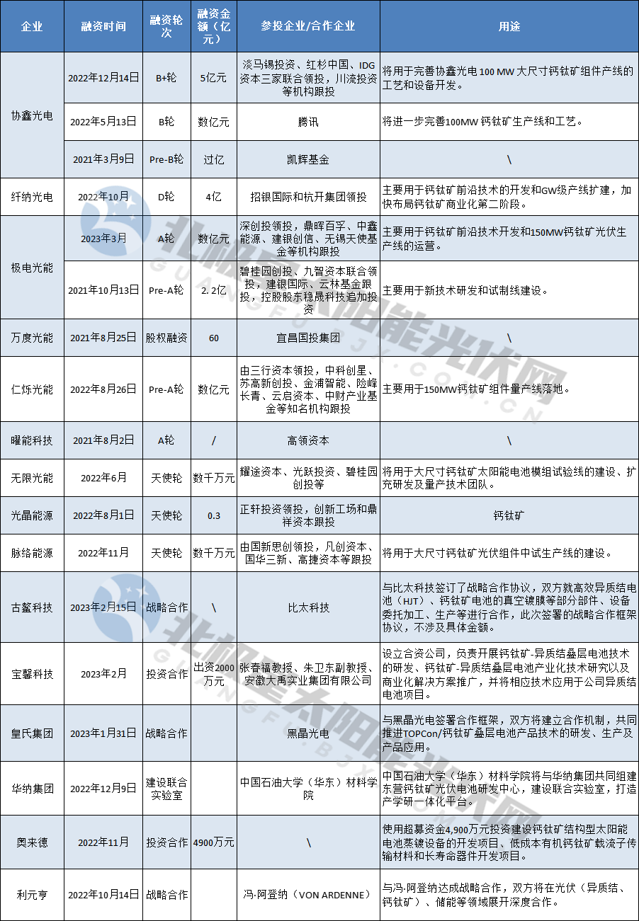 此外,极电光能、仁烁光能也相继完成数亿元Pre-A轮融资,曜能科技A轮获高瓴资本千万投资;无限光能、光晶能源、脉络能源也完成了数千万元的天使轮融资,参投企业涵盖耀途资本、碧桂园、正轩投资等一众明星机构。