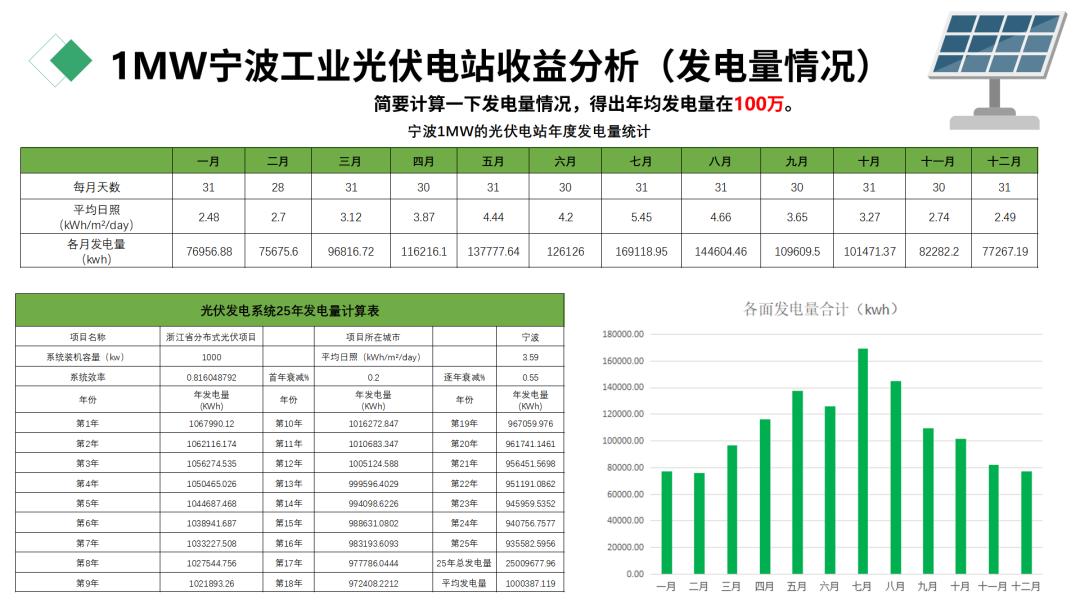 此前,小盒子曾测算过浙江省发电量情况,以宁波市为例,可得出平均1W一年可发至少1度电。