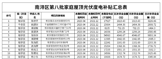 (表格详见《浙江南浔区第八批家庭屋顶光伏度电补贴资金公示!》)