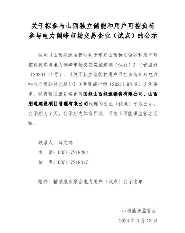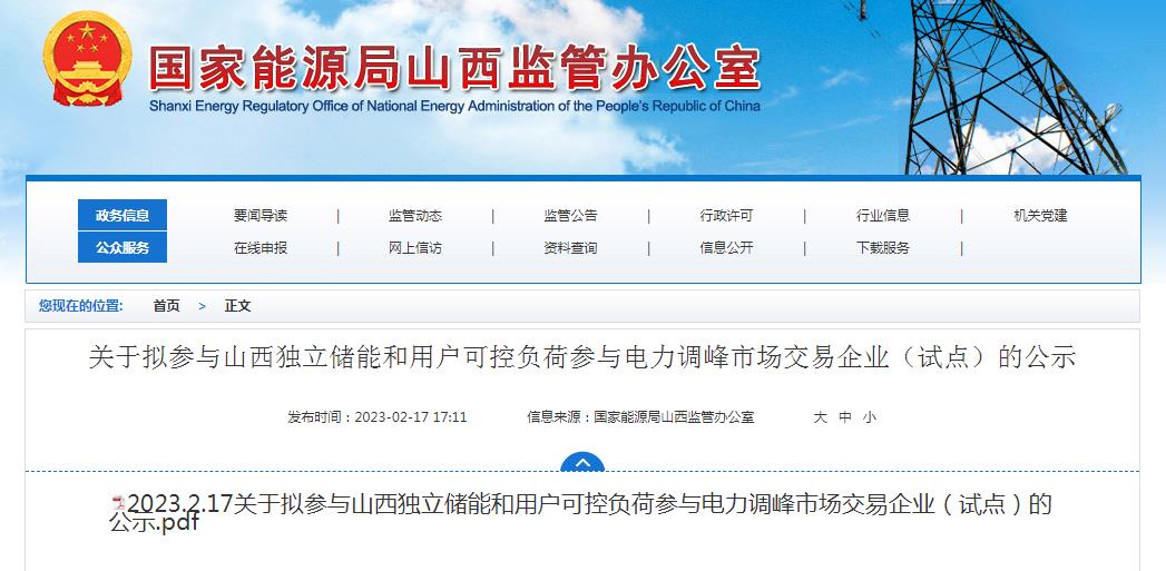 超300家企业入围!山西省独立储能调峰试点名单公示