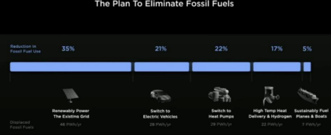 马斯克将宏图计划3分成五大组成,其中重要一步是让家庭、企业、工业等都转向热泵。