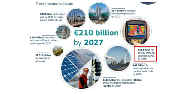 在REPowerEU计划明确的7个投入方向中,“能效升级和热泵”项目位居第2,计划投入资金规模约为560亿欧元,约占当前规划资金规模的20%。