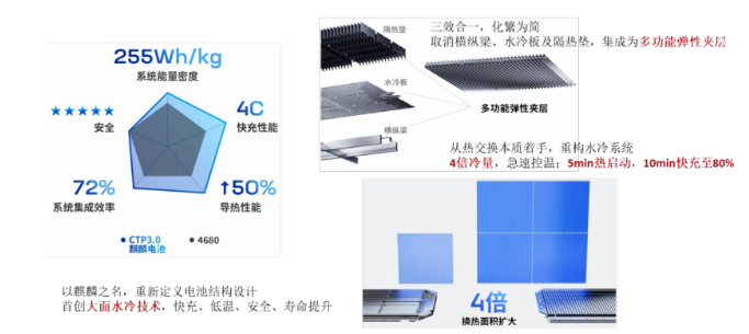 到了2022年6月23日,宁德时代发布麒麟电池热管理技术,通过水冷系统结构设计适应新能源车高压快充的热管理要求,导热性能提升50%,实现急速控温。凭借技术的领先性,麒麟电池被美国《时代》周刊(TIME)评为2022年度最佳发明。
