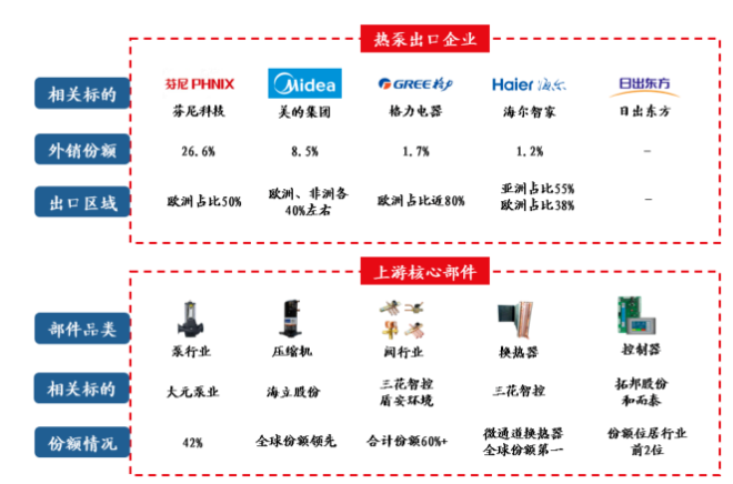 图片图11:热泵出口企业及上游核心部件相关标的汇总,资料来源:产业在线,海关总署,华创证券
