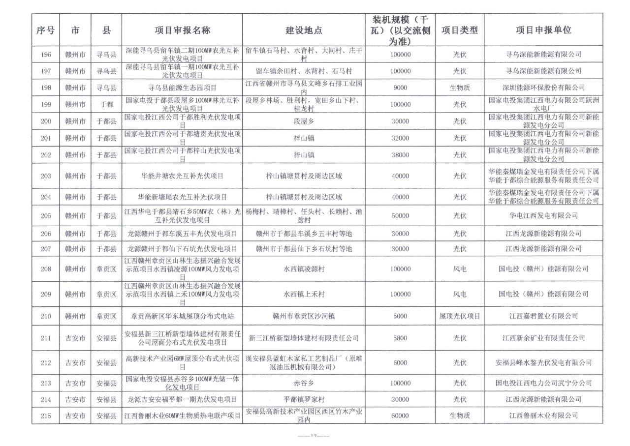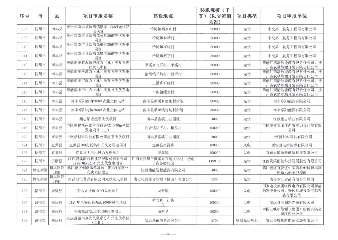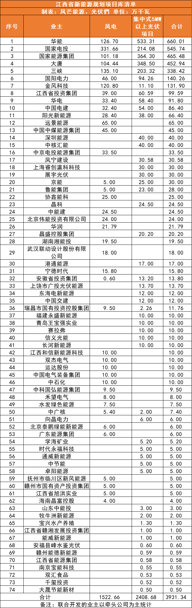江西省优化调整新能源规划项目库 :华能、国家电投、国能投、大唐、三峡均超3GW